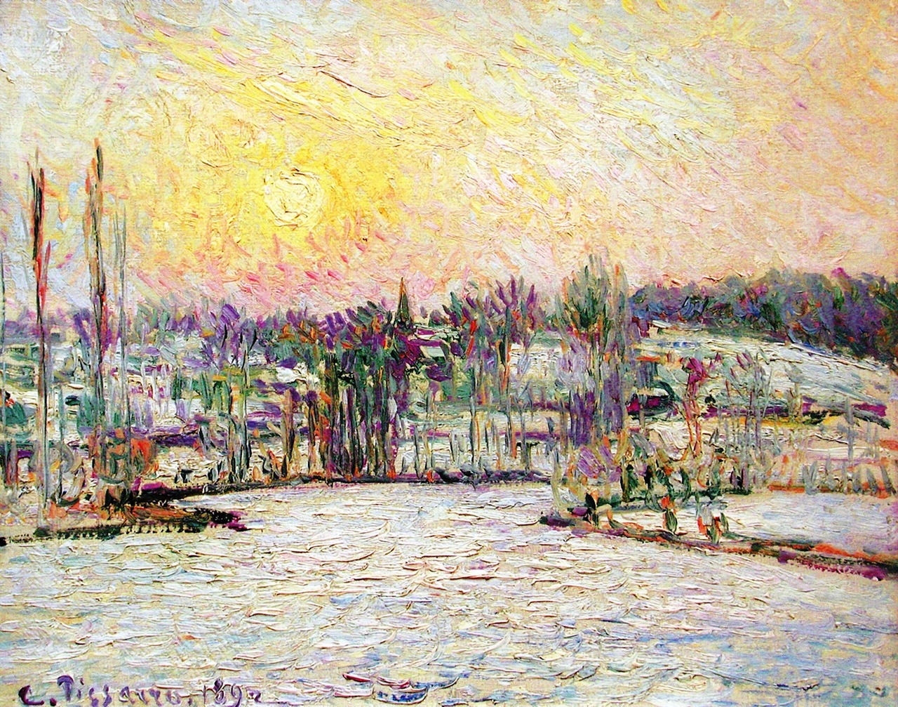 Your oil painting reproduction of "Bazincourt, Sunset, Snow Effect" by Camille Pissarro will be handmade to replicate all the brushstroke details, colors, and shading of the original work of art. Please be assured that you will receive a magnificent oil painting.