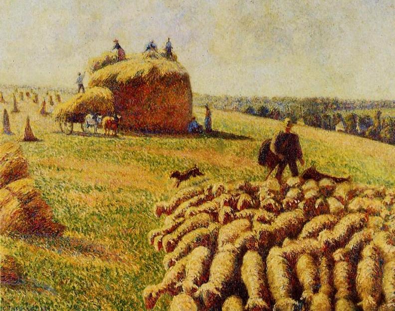 Your oil painting reproduction of "Flock of Sheep in a Field after the Harvest" by Camille Pissarro will be handmade to replicate all the brushstroke details, colors, and shading of the original work of art. Please be assured that you will receive a magnificent oil painting.