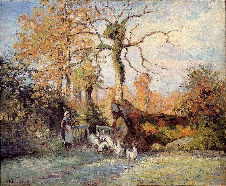 Your oil painting reproduction of "The Goose Girl at Montfoucault, White Frost" by Camille Pissarro will be handmade to replicate all the brushstroke details, colors, and shading of the original work of art. Please be assured that you will receive a magnificent oil painting.