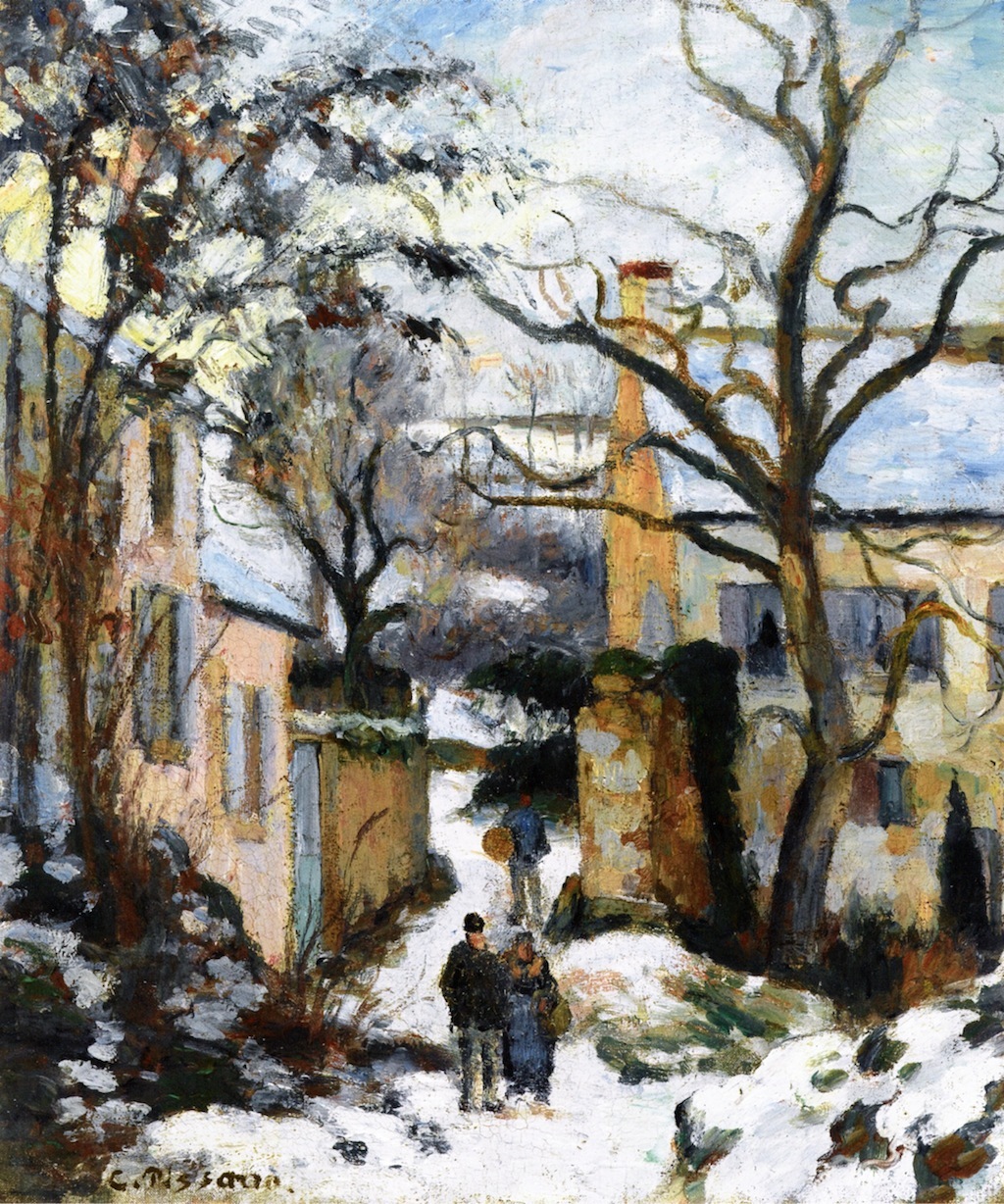 Your oil painting reproduction of "The Rondest House in the Snow, Pontoise" by Camille Pissarro will be handmade to replicate all the brushstroke details, colors, and shading of the original work of art. Please be assured that you will receive a magnificent oil painting.